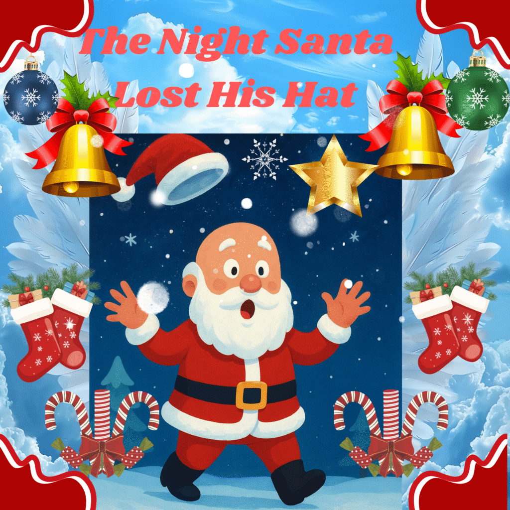 A silly, cheerful tale about Santa trying to save Christmas after losing something important. Chapter 1: The Hat Goes Missing. Santa stood beside his sleigh, checking his list twice. “All ready, Dasher?” he asked. “Ready, Santa!” said Dasher. “Ready, Dancer!” “Let’s go!” said the team. But when Santa reached for his hat, it was gone! “Ho ho ho! My hat!” he shouted. It wasn’t in the sleigh, the workshop, or even on the cookie table. Mrs. Claus said, “Oh dear, the wind must have taken it!” Santa frowned. “Without my hat, the magic won’t work!”